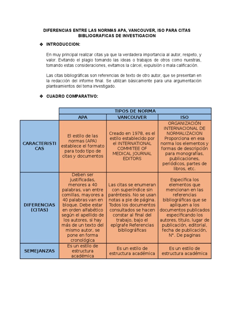 Como Se Hace Un Cuadro Comparativo En Normas Apa