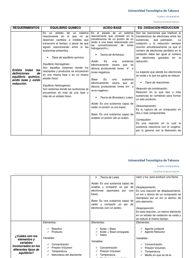 Cuadro Comparativo De Acidos Y Bases Pdf