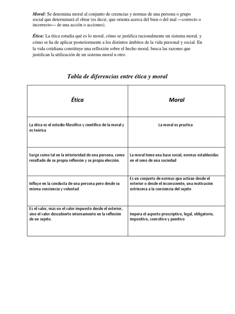Cuadro Comparativo De Etica Y Moral Diferencias