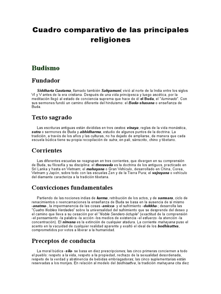 Cuadro Comparativo De Las Diferentes Religiones