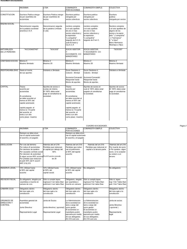 Cuadro Comparativo De Las Sociedades Comerciales En Colombia
