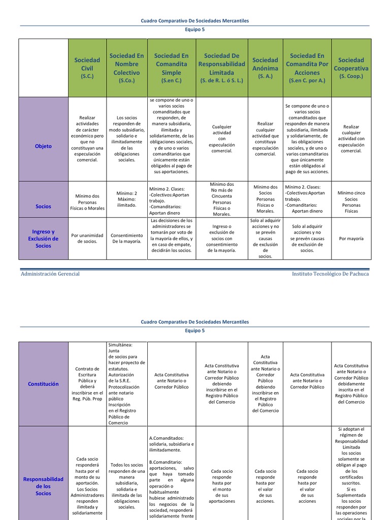Cuadro Comparativo De Las Sociedades Mercantiles En Mexico
