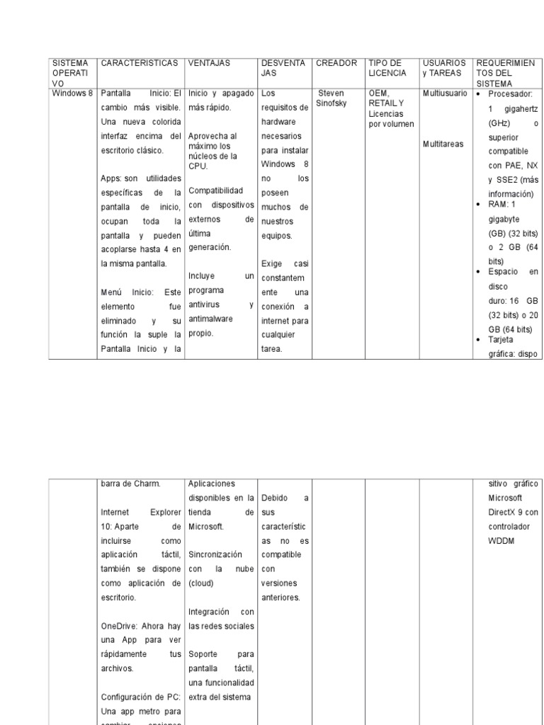 Cuadro Comparativo De Sistemas Operativos Para Pc