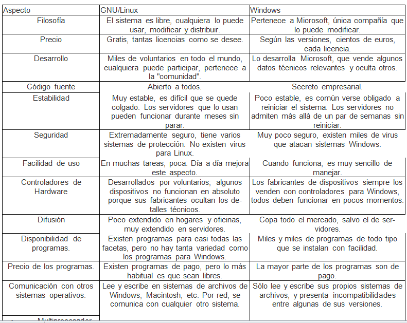 Cuadro Comparativo De Sistemas Operativos Windows Y Linux
