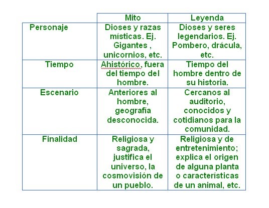 Resultado De Imagen Para Cuadro Comparativo Entre Mito Leyenda Y