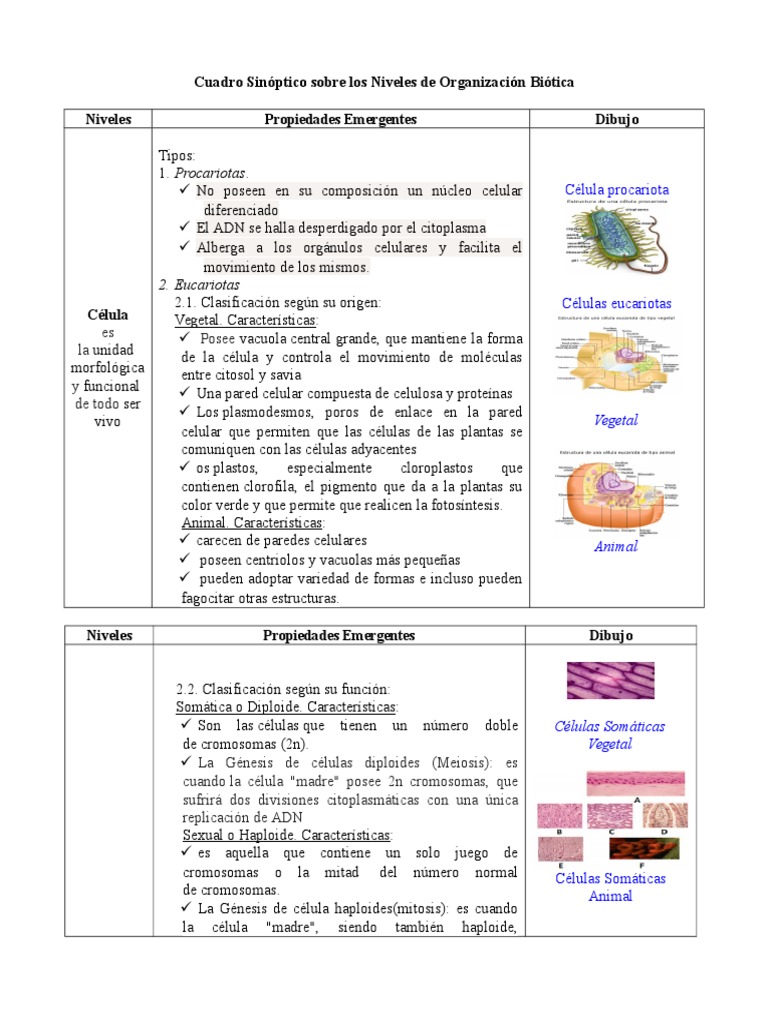 Cuadros Sinopticos Sobre Celulas Vegetales Y Animales Cuadro